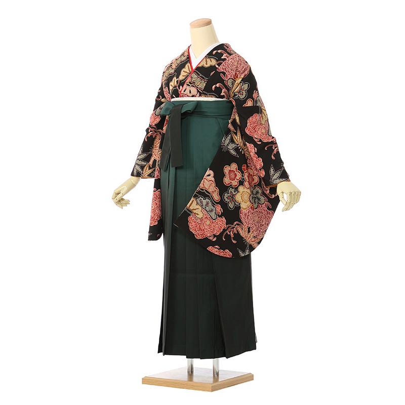 大正ロマンな大輪椿 緑袴 卒業式 宅配着物レンタルの京都かしきもの